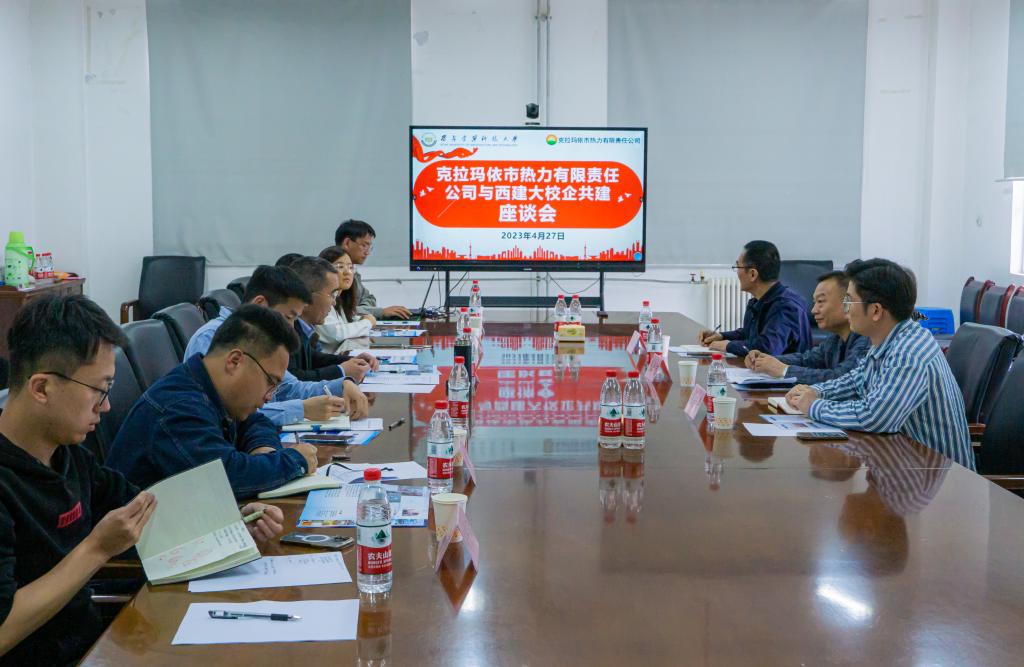 座谈会上,袁庆华首先对克拉玛依市热力有限责任公司一行的到来表示热烈欢迎。宋泽惠为大家介绍了西安建筑科技大学的基本情况,学科专业特色和人才培养计划。高文信老师介绍了我校新疆籍学生的基本情况。袁庆华、杨磊、杜瑶、周宇浩分别介绍了各学院人才培养的基本情况,均表达了希望校企双方加大合作力度,拓宽合作思路和途径,在人才培养、课题研究、实习实训、创新创业等方面开展多层次合作,推动人才供需精准对接,在协同创新中实现多方共赢。