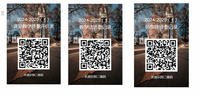 2024-2025(1)学期课堂教学工作专项评估已开始,请各系(中心)领导对本单位本学期所开课程进行全覆盖听课,同行互听人均至少2次,课堂评价公平公正。各专业各年级均需完成学业指导,请于本周五将本学期学业指导安排报教学办。本学期同行及领导干部听课全部使用问卷星进行填报。问卷星二维码如附件图所示。
