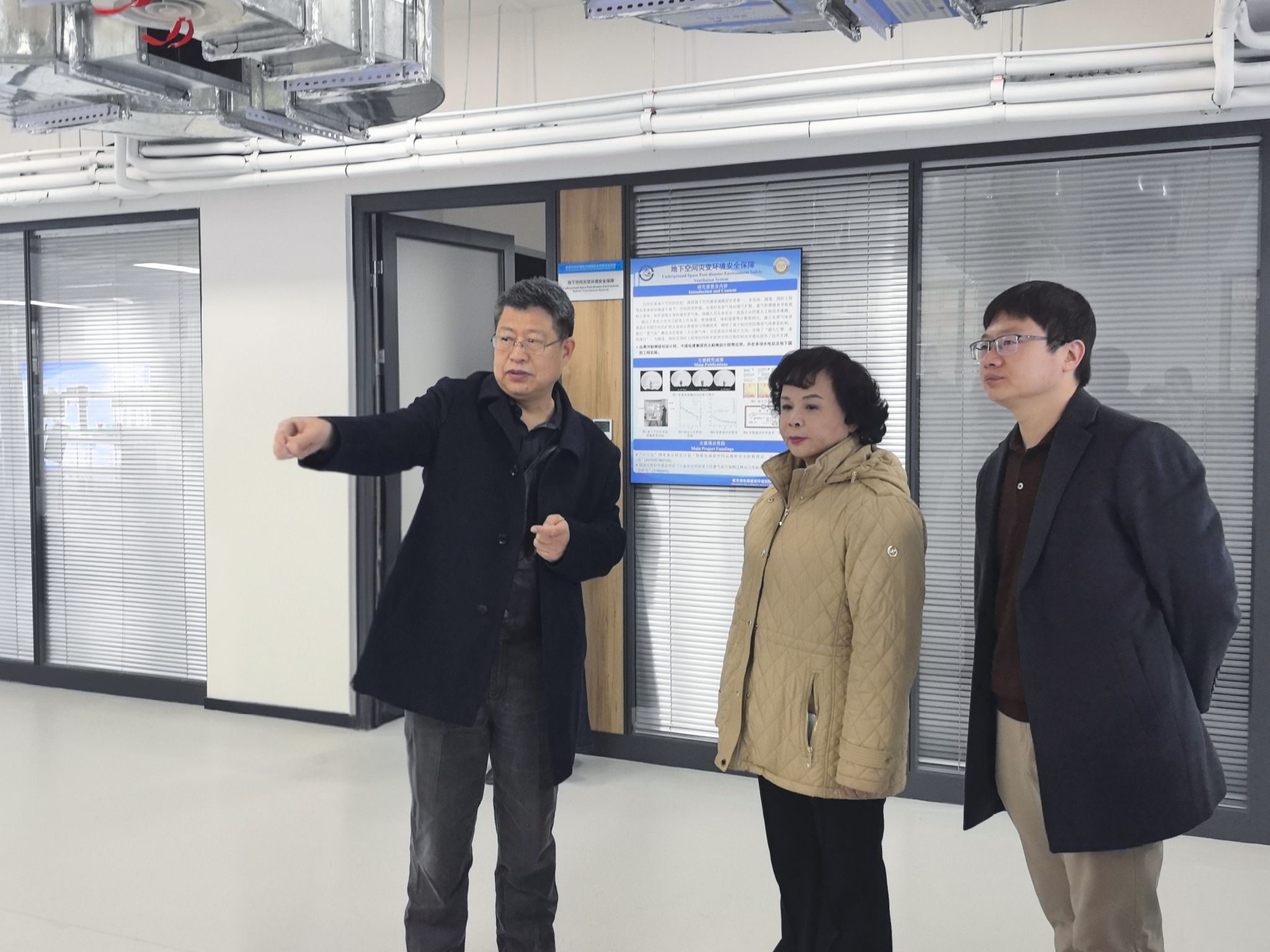 会后,朱颖心教授参观了教育部低碳建筑国际合作联合实验室,重点调研附壁通风技术、灾变环境空气安全保障等创新成果,对实验室在地下空间环境保障领域研究进展给予高度评价,并与科研团队就学科前沿问题交换意见。
