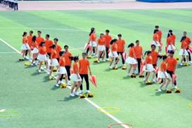 款款少年,鲜衣怒马;缁缁鸣雁,旭日始旦。伴随着他们飞快的奔跑,建科健儿的队形呈一轮“朝阳”火热来袭。舞姿绰约,婉转万千,而我建科学子便宛如这朝阳,活力四射,朝气蓬勃。他们将青春作为主调,用激情充当韵脚!