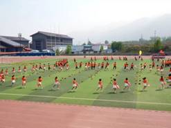 舞姿跳跃之际,菱形剑指八方变换开来,灿烂的笑容热情似火,矫健的身影跃动张扬。他们斗志昂扬,英姿飒爽,不畏前行万阻做骄客,心有乾坤无惧雨滂沱。那踏出的每一步都始于热忱,而跃起的每一下都忠于坚定。天行健,君子以自强不息,青春无畏便是最好的证明!