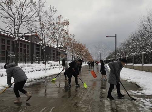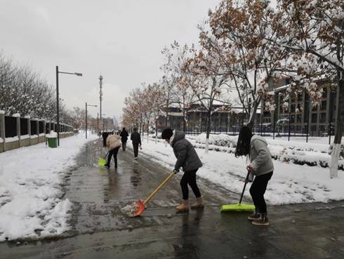 青年志愿者服务队于12月28日下午积极行动起来,开展扫雪行动,清扫世纪大道等公共场所内的积雪,美化校园,方便出行,从扫雪这件小事做起,传递正能量。