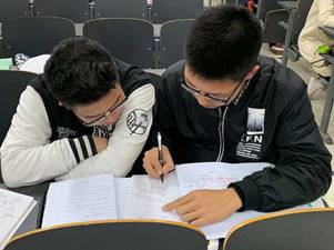 在这间小小的教室里,萦绕着知识的气息,学霸们为辅导对象耐心解疑,传授高分技巧,尽量让他们在最短的时间内获得最大的提高,同学们也努力汲取知识。