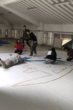 首先,宣传花了一天的时间打好了底稿,整个人在布上滚来滚起也是快乐的不行。