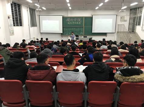 接下来,朱海琦老师为同学们进行考前动员。他讲到了考前准备的重要性以及答题卡书写等问题,并在大会上强调,即将进行的大学英语四、六级考试不仅是对同学们应试能力的考验,更是对学生诚信认知的检验。同时,也向同学们介绍了我校相关考试规定,提醒同学们切勿在期末考试中有任何作弊行为。随后,王翼杰老师以六级考题为例,对各个题型进行了讲解,为大家点拨做题技巧。