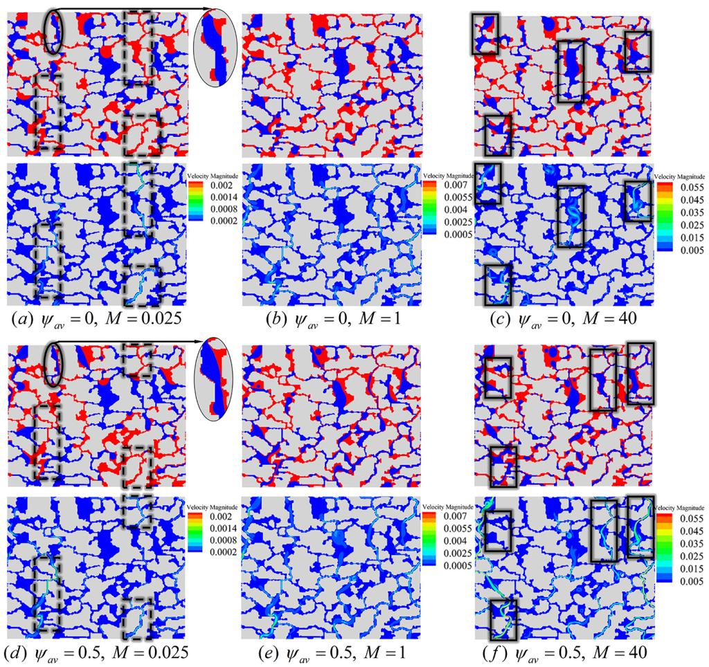 图6 不同粘性比下,表面活性剂对多孔介质内渗流流动