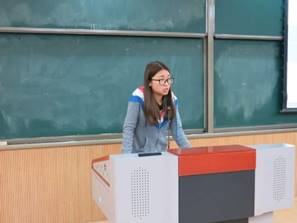 然后,“互联网+”陕西省金奖获得团队成员杨柳青同学从创意来源、前提准备、团队分工、路演、心得体会等方面向同学们一一分享了自己的比赛经验。期间,杨柳青同学重点说明了路演要求和路演大忌,并提醒同学们放远眼光,发挥优势,避免跟风。最后,她结合团队比赛ppt向同学们进行了通俗易懂的讲解,同学们获益匪浅。
