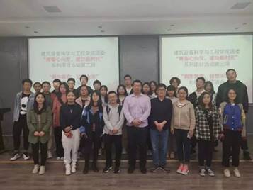 17级辅导员王翼杰老师,暖通1601班王成哲同学,建环1501班于延磊同学,电气1603班吴渊岳同学。