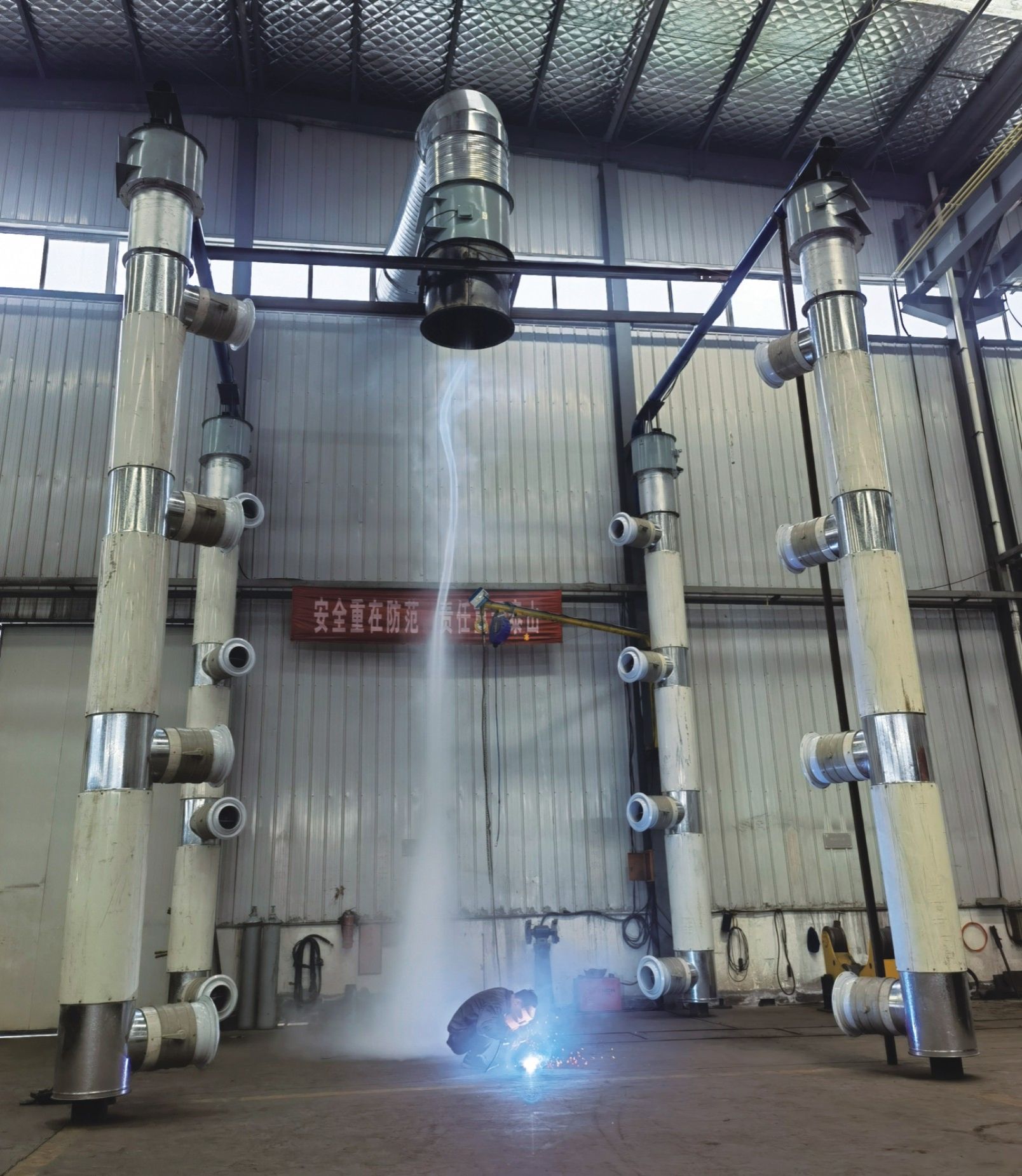 针对机械加工厂房焊接烟尘的涡旋通风高效控制技术 针对炼钢厂房转炉高温烟尘的 扩容蓄调高效通风技术
